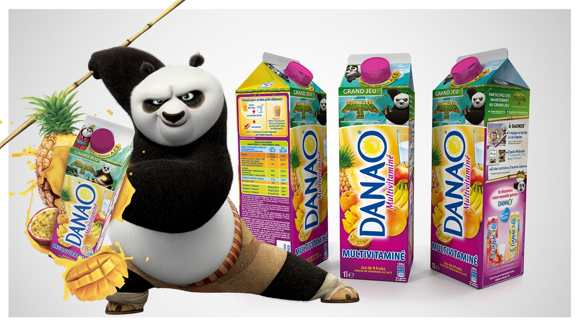 La marque Danao ayant rejoint le groupe ECLOR en 2007, le groupe a souhaité dynamiser les ventes Danao en misant sur une opération d’activation massive sur 2015. Avec le soutien de la FOX, Hop Créative Services développe une opération sous licence Kung Fu Panda 3 afin de toucher son coeur de cible les 6-12 ans. L’opération, articulée autour d’un jeu concours sous forme d’instant gagnant pour les goodies et de tirage au sort par huissier pour le voyage aux USA, a permis d’augmenter la base de données de la marque et sa notoriété auprès de la cible.
