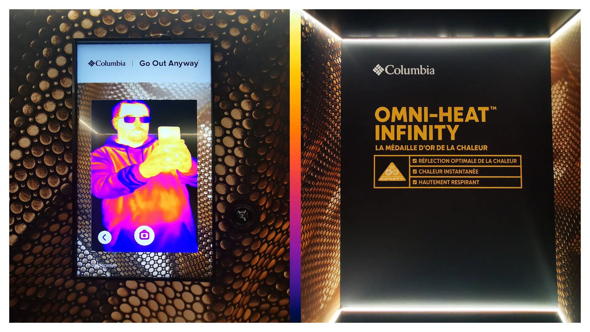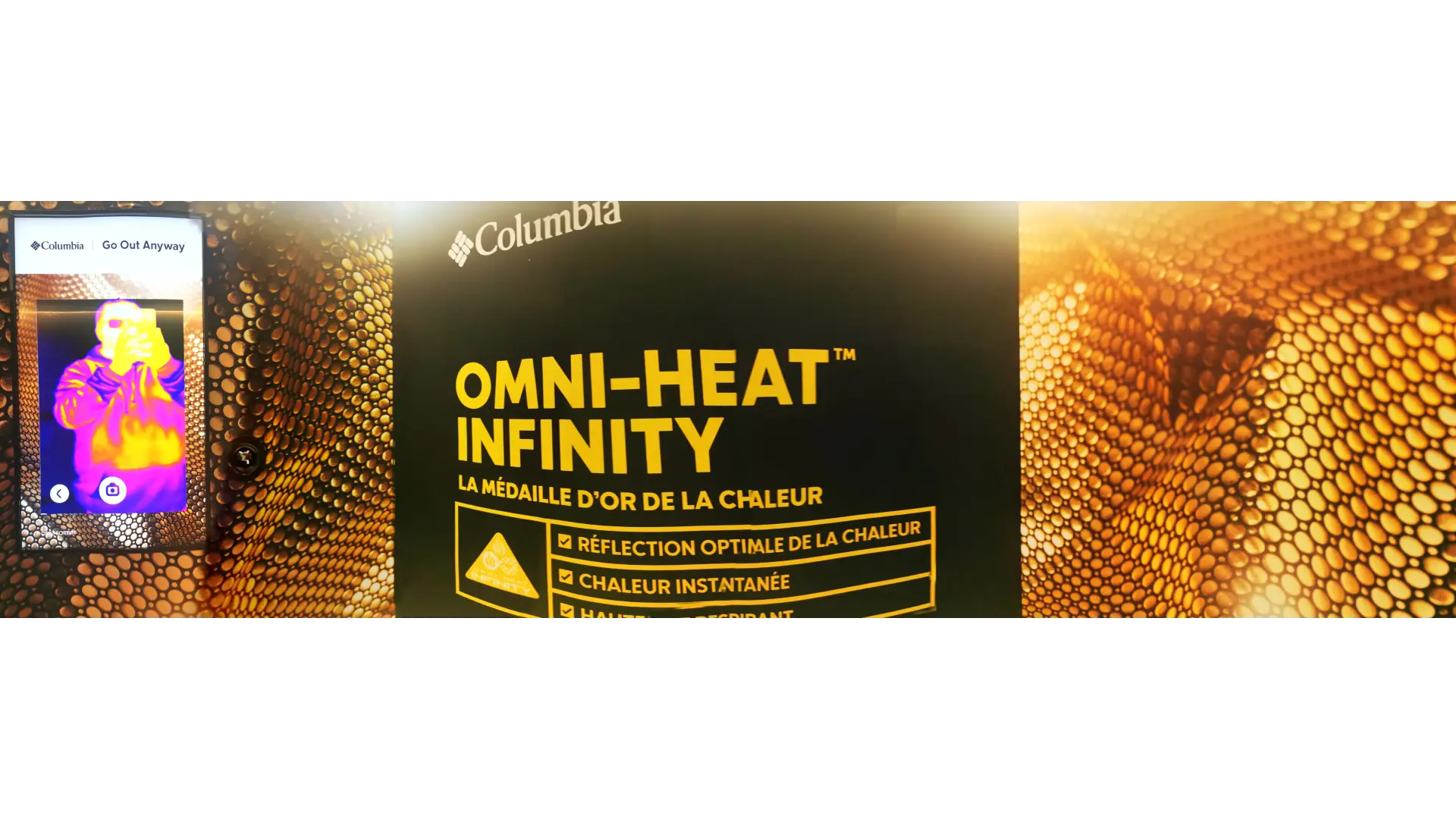 Le studio a innové en transformant le concept classique du photobooth pour leur client Columbia. Les visiteurs de Citadium Paris, en entrant dans une cabine réfrigérée équipée de technologie d'imagerie thermique, ont pu expérimenter en direct l'efficacité des doudounes Columbia en termes de protection contre le froid. Sur l'écran, les silhouettes des participants étaient affichées en couleurs thermiques analysées. En quelques instants, cette image était capturée et pouvait être récupérée via un QR code personnel. Ce dispositif innovant a non seulement mis en avant les caractéristiques uniques des produits Columbia, mais a également offert une expérience utilisateur interactive et mémorable.